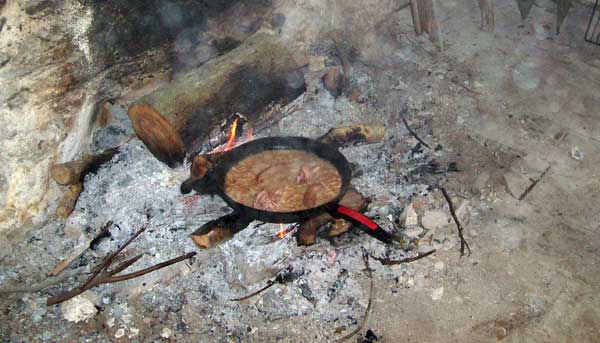 Midi, un petit cassoulet au feu de bois, histoire de changer des grillades et puis on s’y remet.