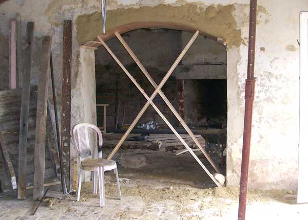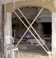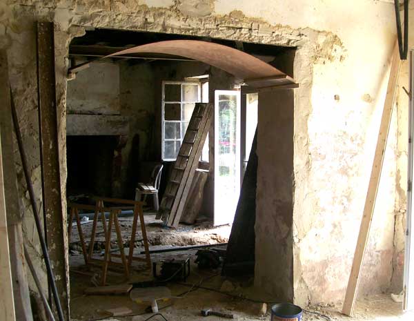 Pour ce faire j’ai positionné un contreplaqué de 5 mm que j’ai solidement fixé de chaque côté de l’ouverture. La forme est donnée, il n’y a plus qu’à remplir en espérant que le contreplaqué tienne.