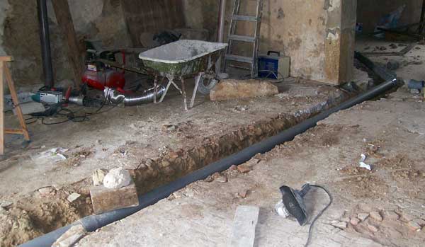 Ce samedi j’ai mis en place le tuyau PVC, vérifié la pente, tenté une évacuation ... ça marche. Dans la semaine j’achéterai un Trône pour mettre un peu de confort dans cette maison :-)