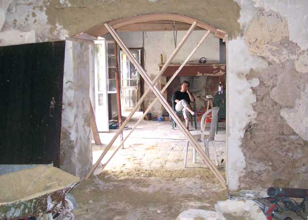 Dans l’après midi une petite visite de la famille qui vient ponctuer mes coups de truelle.