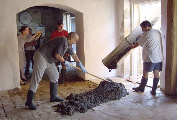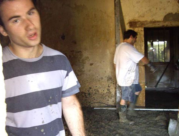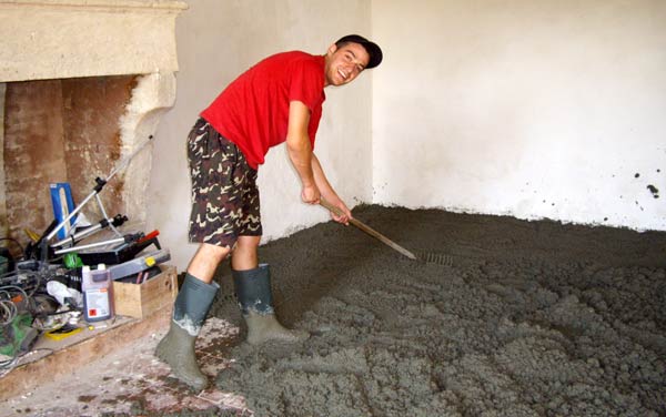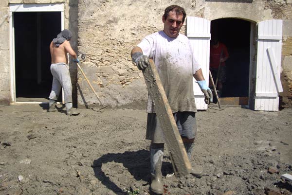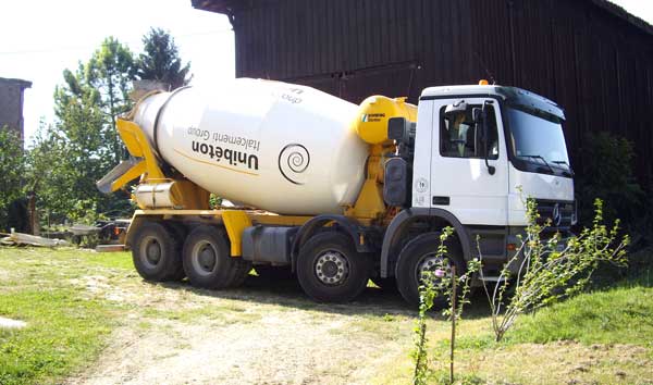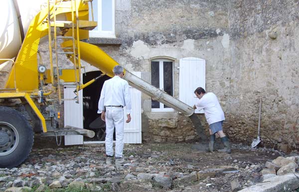 Mon ami David était venu avec son neveu. Le fiston était également là, nous étions quatre bonhommes... Heureusement, car tout seul, ce genre de truc, c’est impossible à faire, surtout que le béton de toupie tire vite, très vite..
