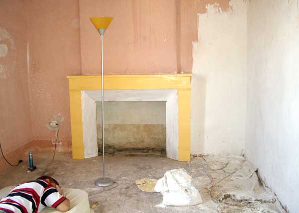 Ci-dessous la cheminée nettoyée et le karcher passé dans toute la pièce...