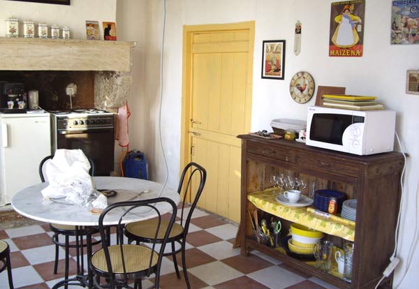 Et la cuisine avec la porte vers le garage repeinte.