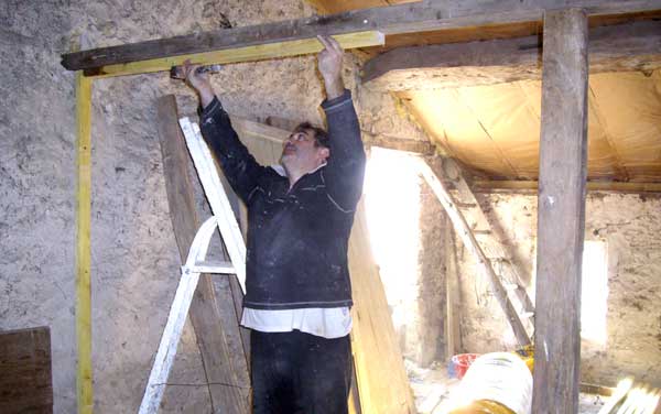 Les plaques de BA13 montées et les demi-chevrons achetés, il n’y a plus qu’à se mettre au travail.