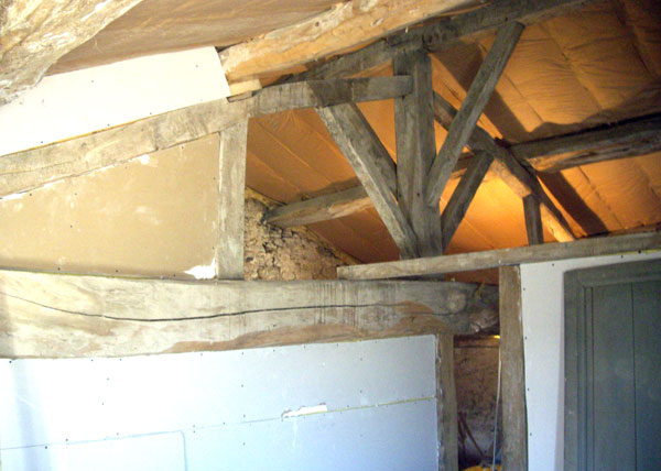Pour rester dans l’aspect rustique, les ouvertures de portes sont fabriquées avec des pièces de charpente qui traînaient au garage.