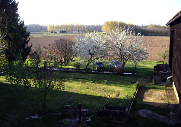 Le printemps arrive doucement et vous voyez ci-dessous nos deux cerisiers, qui ne manqueront pas de nous inonder de fruits prochainement, nous régaler de leurs belles fleurs blanches.