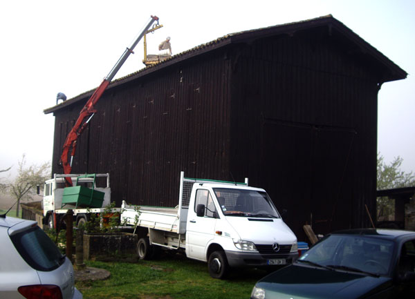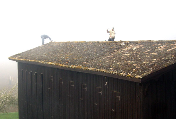 Le charpentier-couvreur est à pied d’oeuvre. L’objectif : enlever la mousse , remanier les tuiles, combler les gouttières et reporter la prochaine mise à contribution de notre porte monnaie dans sept ou huit ans.