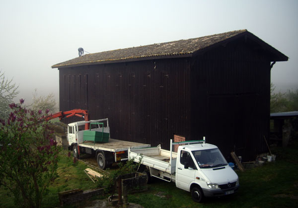 L’opération durera trois jours... mais ça y est : le séchoir à tabac est hors d’eau... (jusqu’à la prochaine inondation ;-) )