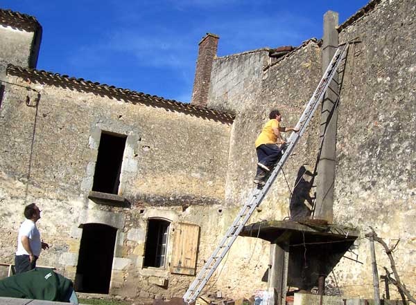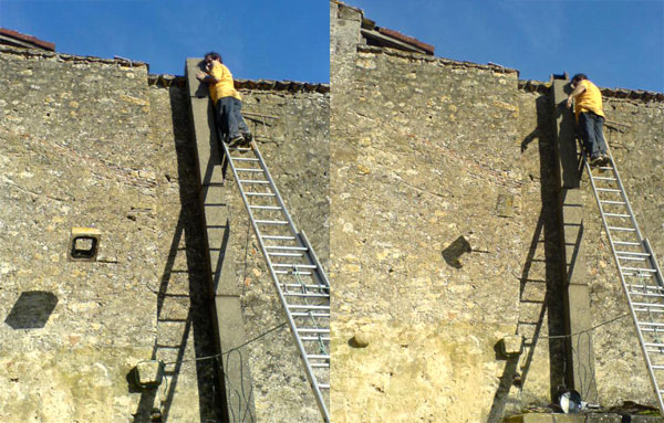 Une fois la partie haute terminée, le travail continue à la masse, c’est moins périlleux, rien ne vaut le plancher des vaches